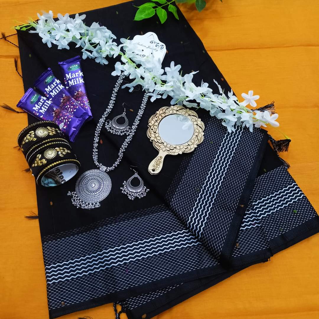 Black katha saree combo package . gift package( হাফসিল্ক পাতলা শাড়ি)