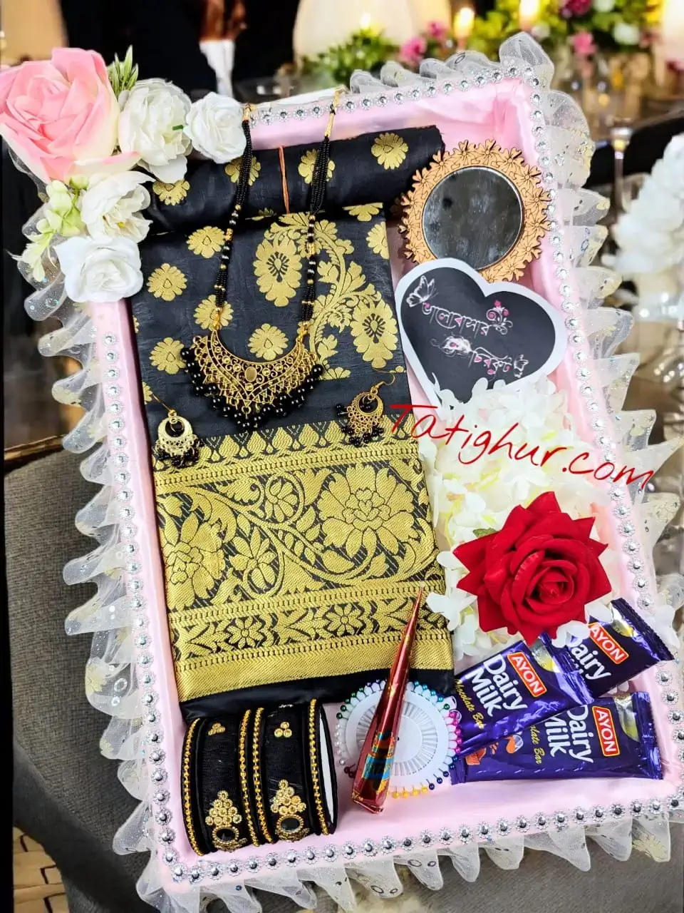 • একটি কাঠ ফ্রেম এর আয়না। এই সব জিনিস গুলো একত্রিত একটি সুন্দর আকর্ষণী গিফট বক্সে দেওয়া থাকবে ।